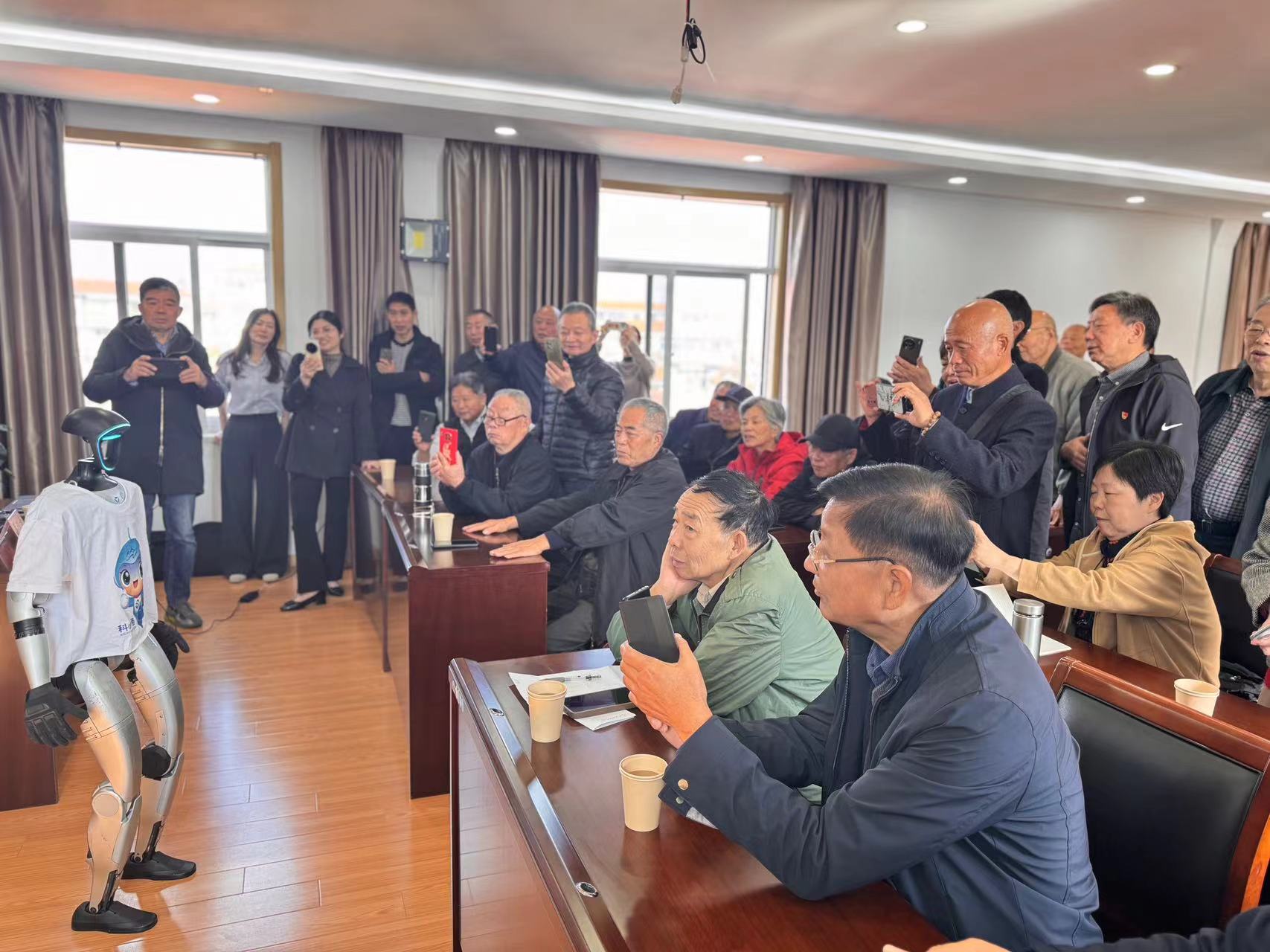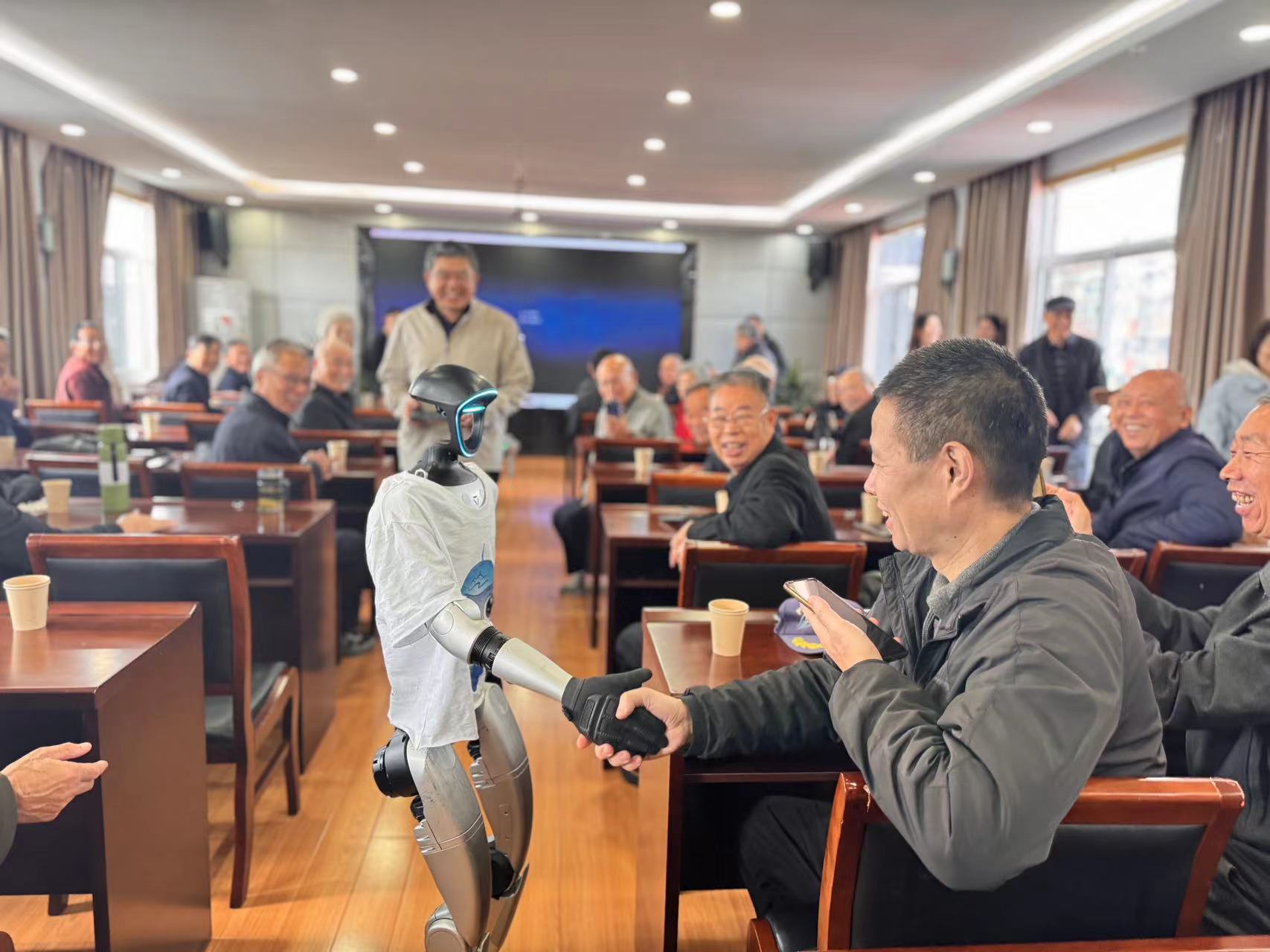 上午九点半,军休所的活动室内座无虚席,气氛热烈。当憨态可掬又本领高强的智能机器人登上临时搭建的“舞台”时,立刻吸引了所有老干部的目光。只见机器人在科技志愿者的指令下,流畅地完成行走、转身、挥手问候等一系列动作,其灵活的姿态和精准的控制引得老人们连连赞叹。紧随其后的机器狗表演更是将现场气氛推向高潮,这只仿生机器狗不仅能稳健地小跑、匍匐,还能完成直立行走等高难度动作,展现出惊人的平衡性与适应性。表演环节不再是单向的展示,更充满了互动与体验的乐趣。在志愿们的鼓励和协助下,几位精神矍铄的老干部饶有兴致地走到台前,或小心翼翼地触摸、或与机器人合影。今年85岁的李老开心得像个孩子,他说:“真没想到,我们当年想象未来的样子,今天就在眼前了!这科技发展太快了,太好了!”活动现场,惊叹声、欢笑声、掌声此起彼伏。老人们时而专注凝视,生怕错过任何一个细节;时而凑近交流,分享着彼此的新奇感受;时而举起手机,记录下这充满未来感的瞬间。一位老干部激动地表示:“年轻时我们为国家搞建设,条件艰苦,但充满干劲。今天看到祖国科技如此发达,心里特别自豪、特别欣慰!这样的活动不仅让我们开阔了眼界,更感受到了社会对老同志的关怀和尊重,感觉自己也年轻了许多。”