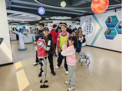 在智能科技体验区,无人机拼装试飞、AI智能互动、VR虚拟体验等前沿科技项目,更是点燃了孩子们的探索热情。大家分组协作,动手拼装无人机组件,在老师的指导下完成试飞操作,看着自己组装的无人机缓缓升空,脸上洋溢着自豪与喜悦;在AI体验环节,孩子们与人型机器人、机器狗互动,亲身感受人工智能给生活带来的改变,在趣味互动中了解人工智能的基础知识;VR沉浸式体验则让大家置身虚拟场景,突破时空限制,直观感受科技的无限可能,阵阵惊叹与欢笑声回荡在场馆之中。