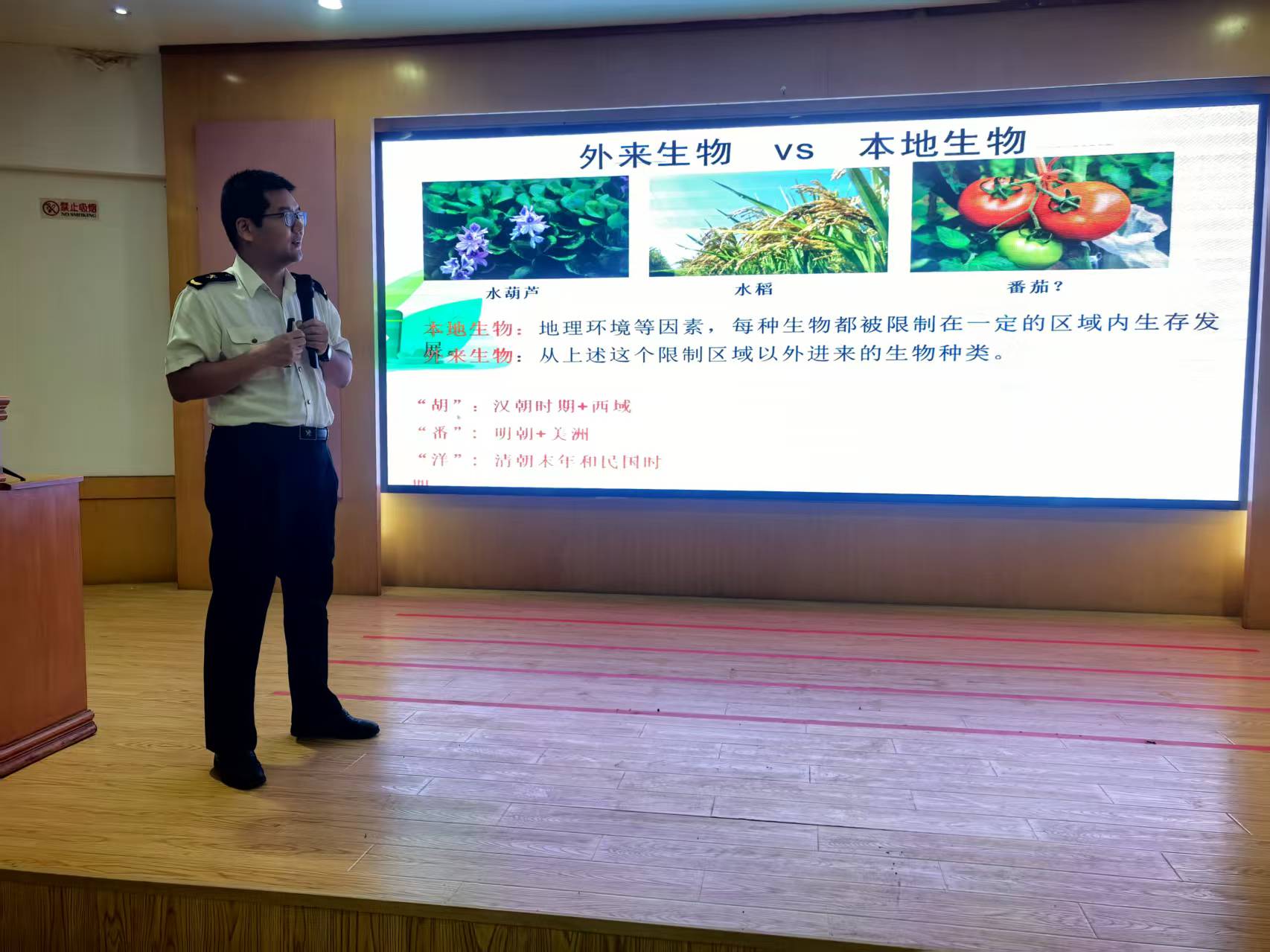 在科普讲座《防范外来生物入侵 保护国门生物安全》活动中,专家通过从异宠的种类及危害、防范外来生物入侵、海关在防范外来物种入侵方面发挥的作用等方面,结合近年来海关截获的典型案例普及了国门生物安全的相关知识。讲座通过生动的图片、知识闯关、互动问答等多种形式,进一步强化了“人人都是国门安全守护者”的共识。