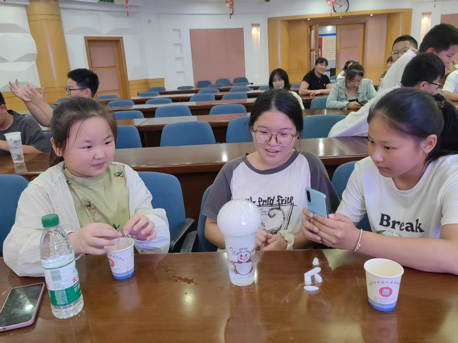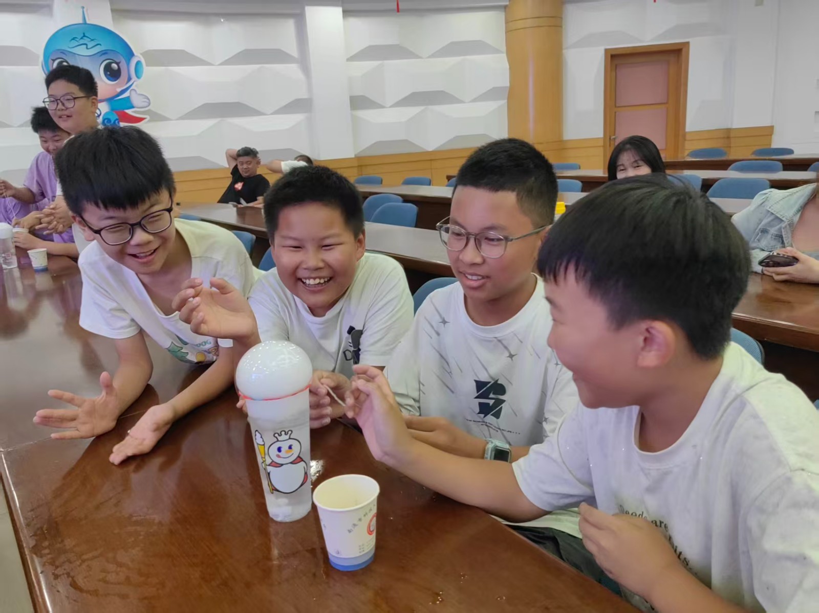 申老师示范完毕,队员们迫不及待领取实验材料,亲身体验操作,在动手实践中解锁科学原理,感受科技魅力。