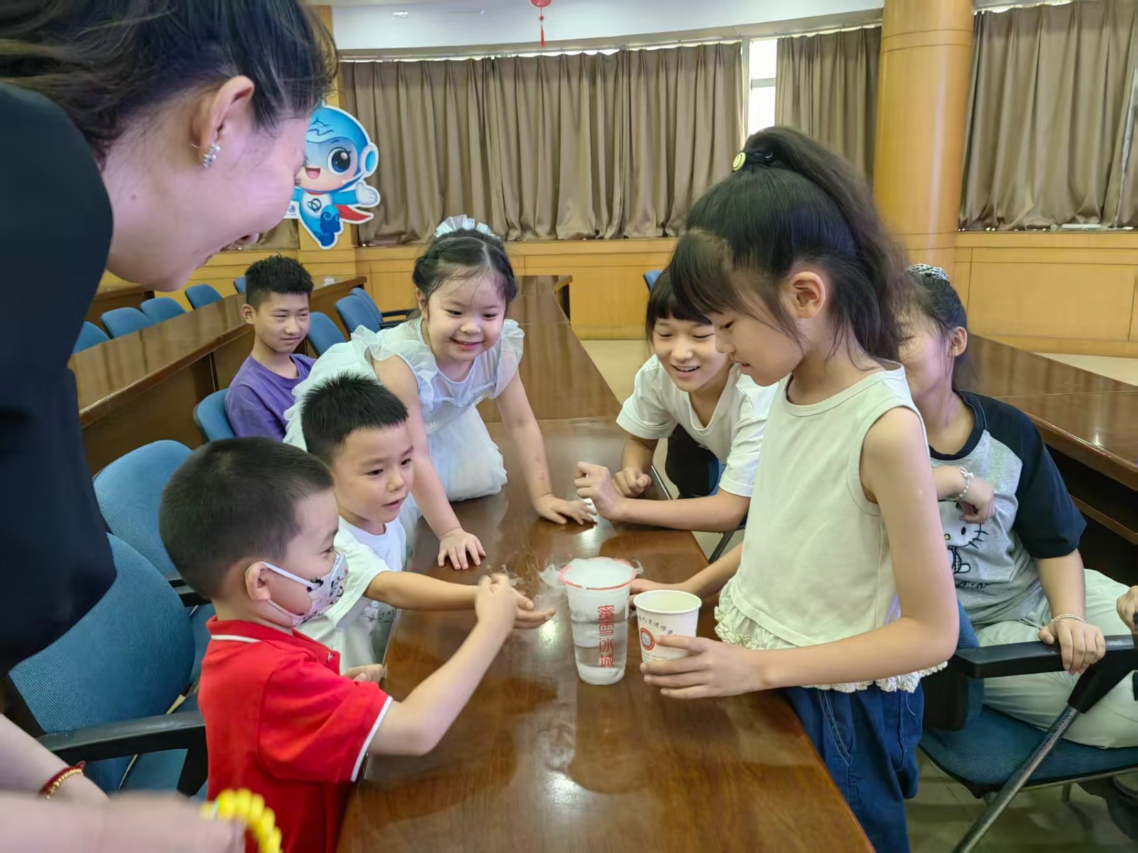 活动现场,最引人注目的当属趣味十足的科学实验“冰与火之歌”干冰实验。科技辅导员申老师借助干冰特性,升华产生的“白雾”蘑菇云等奇妙的科学现象,生动直观地为队员们展示干冰特质,瞬间点燃大家的探索热情。